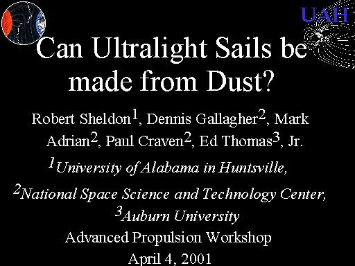 This work at UAH is begun in conjunction with the NSSTC and Auburn University.