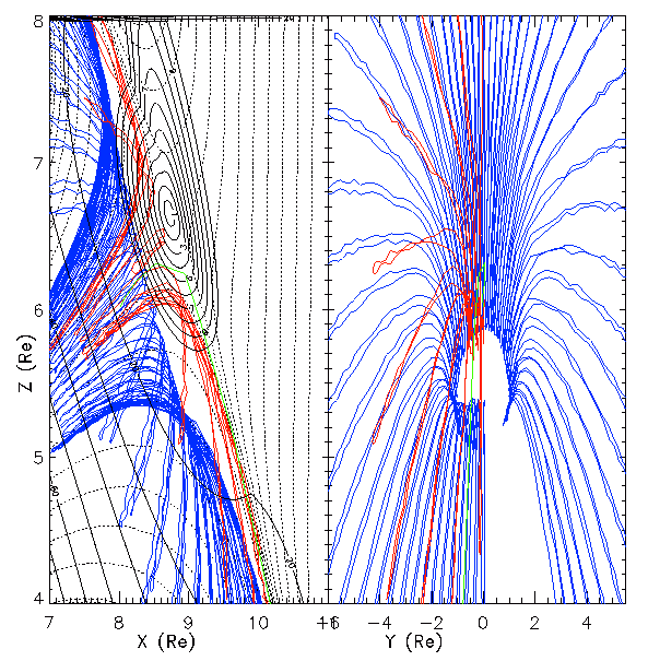radial distance (2--3 Re) of the topological minimum B point. We do