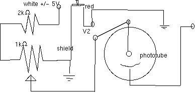 - With +5 V connected to the module, adjust V2, the voltage across the phototuve. Do this with no